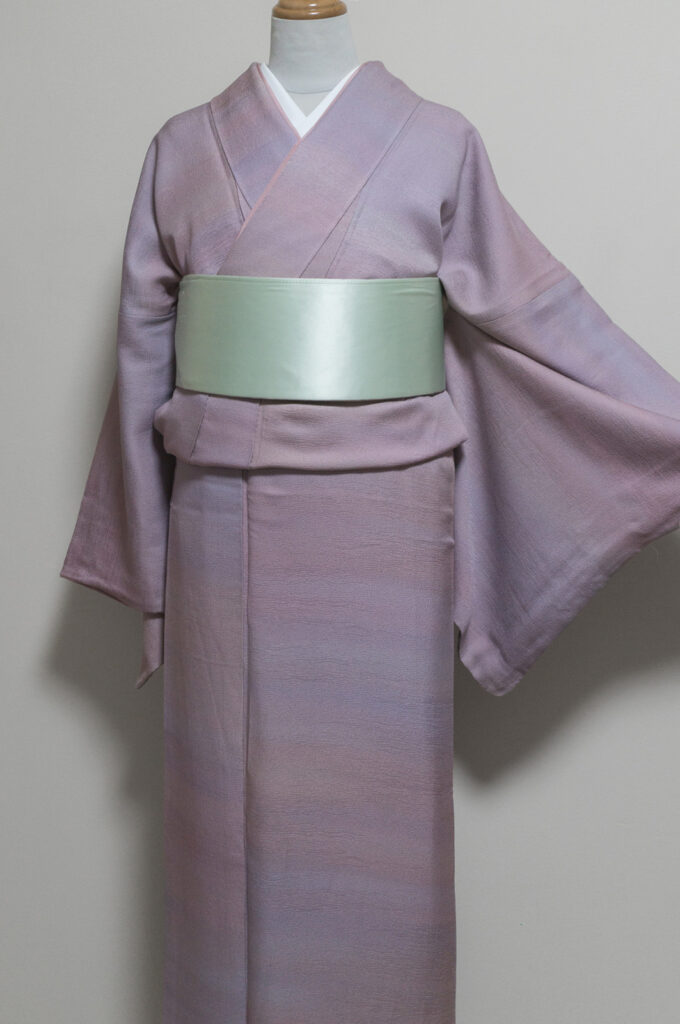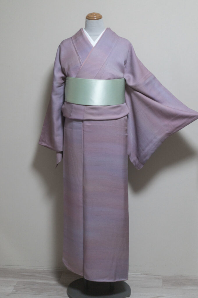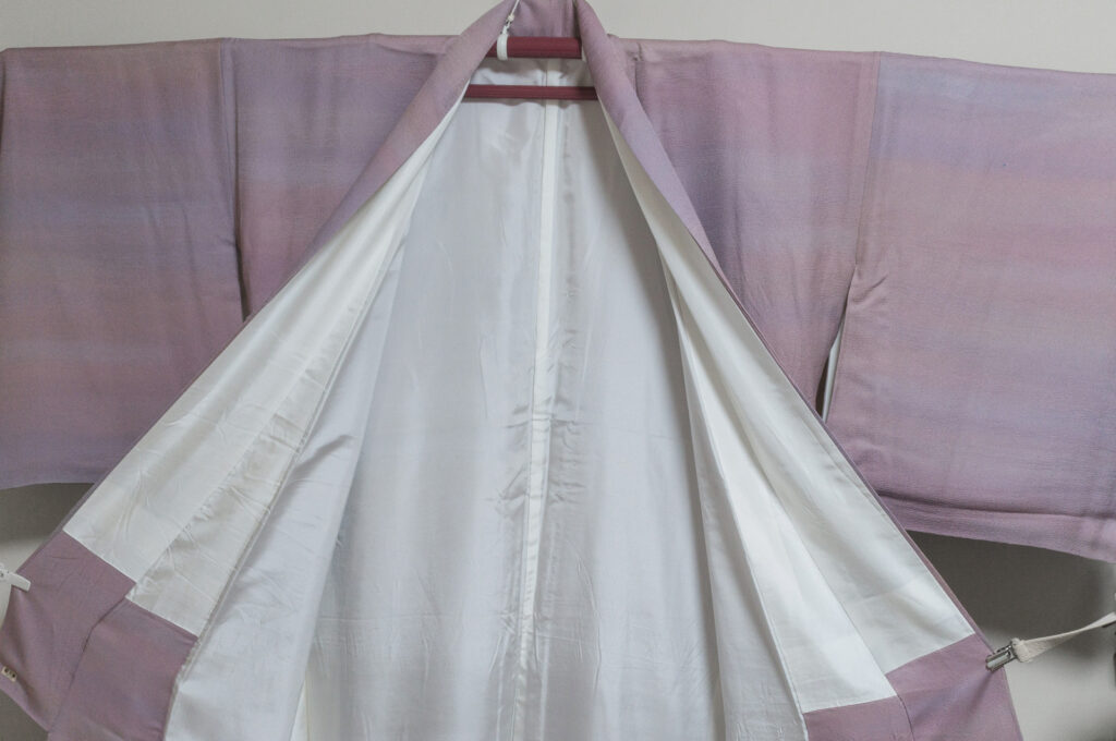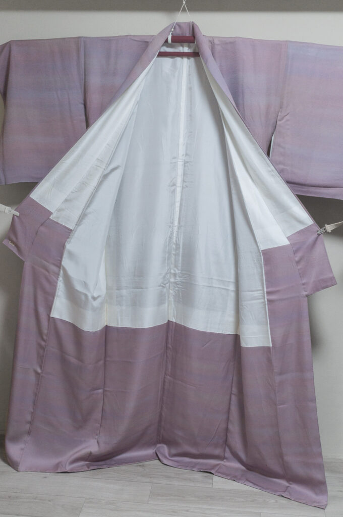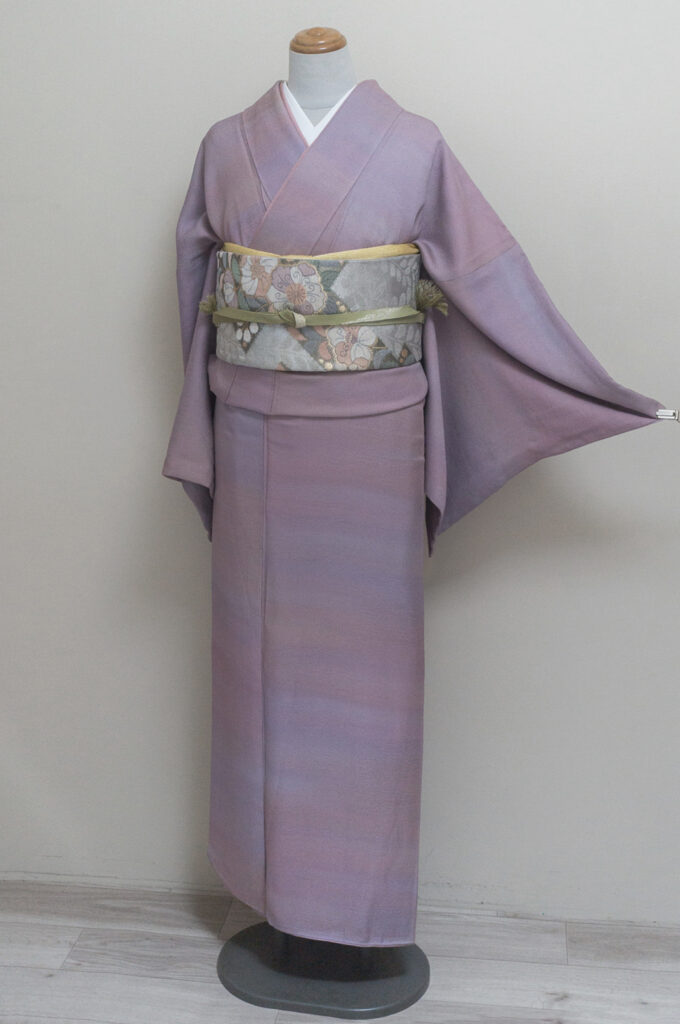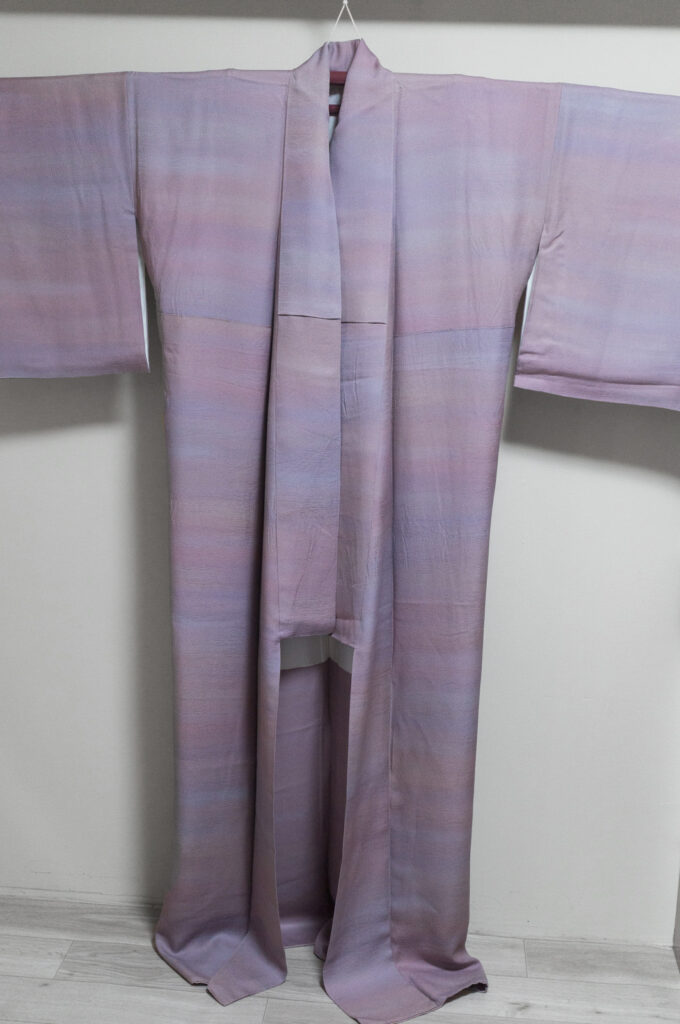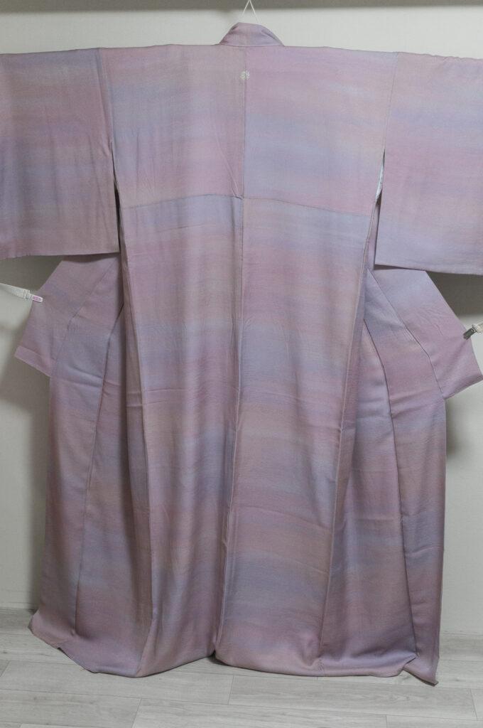 三越さんの銘が入った横段ぼかし、紫色グラデーションの無地着物です。