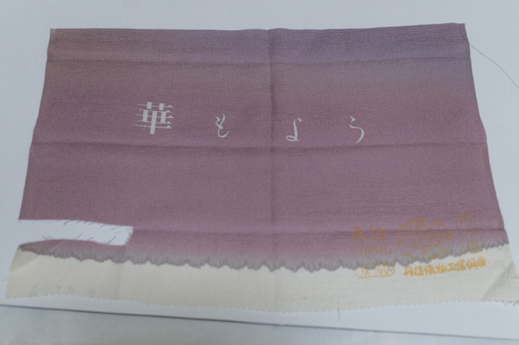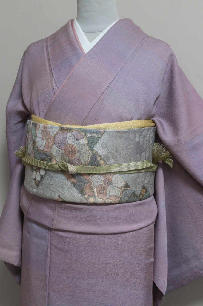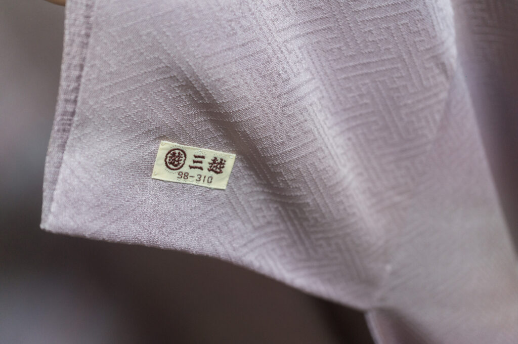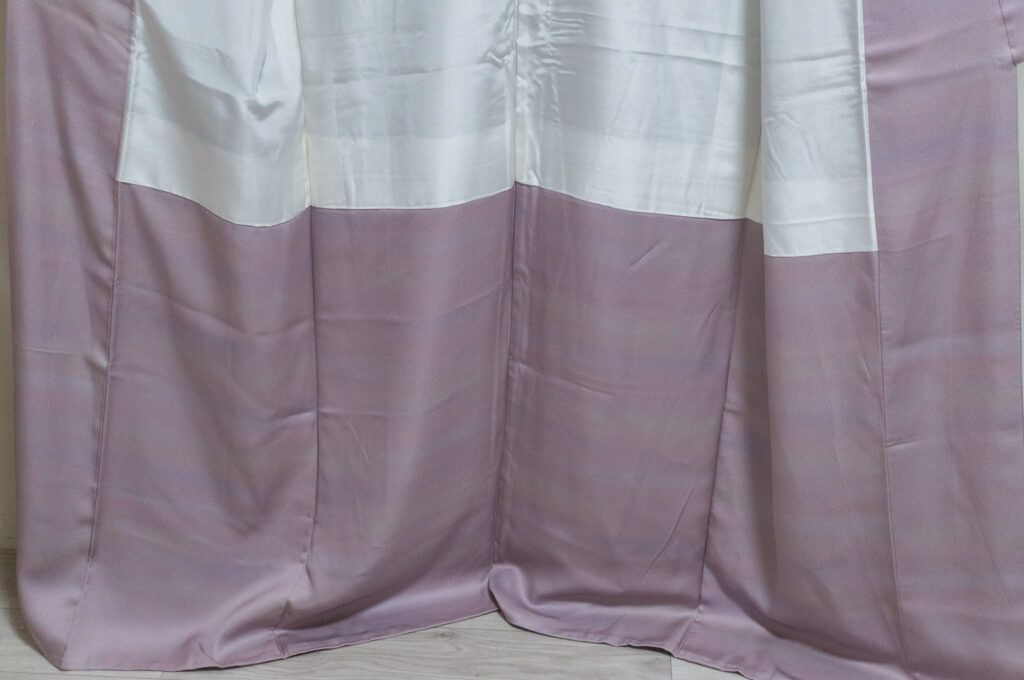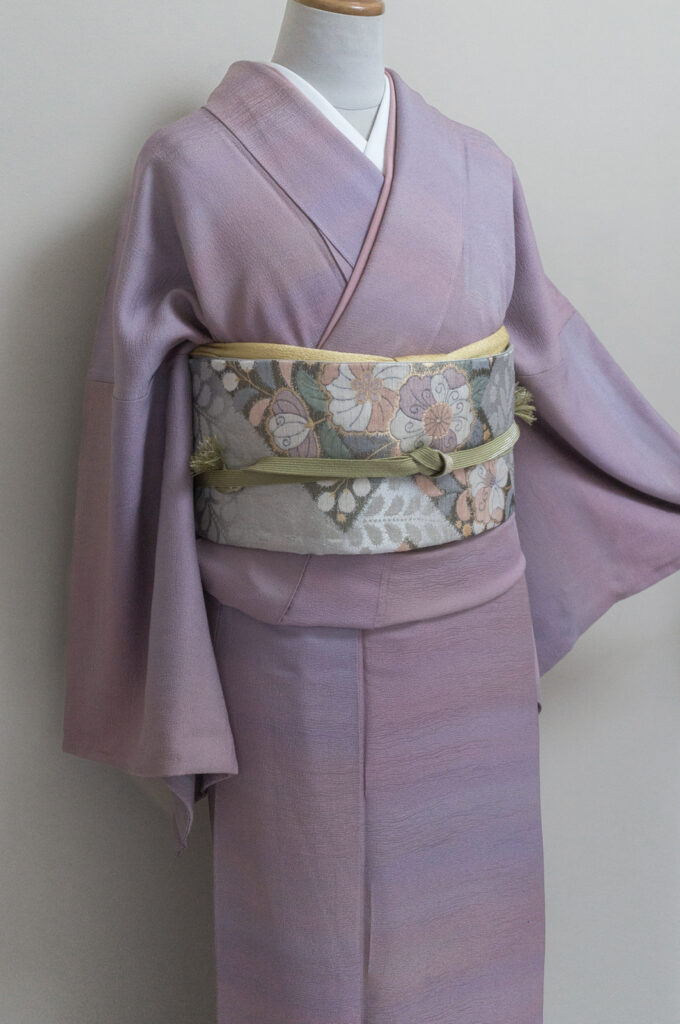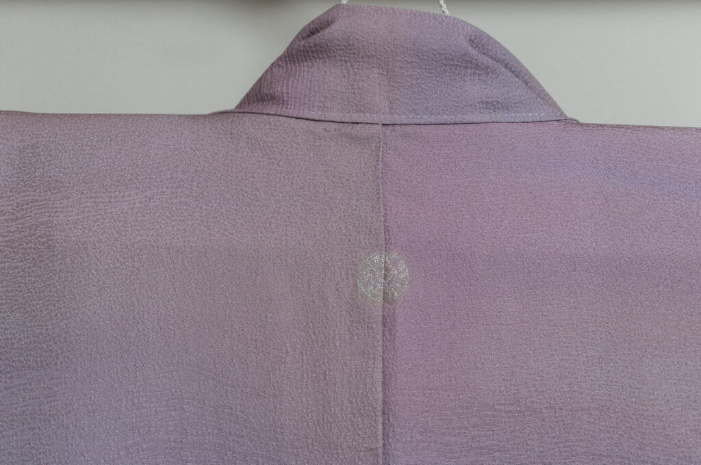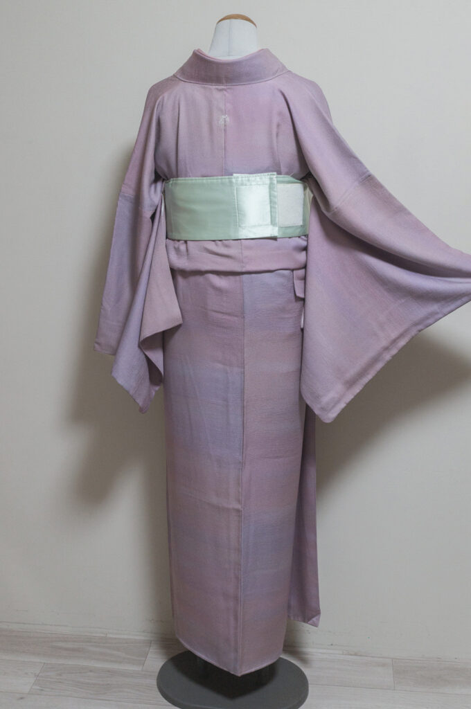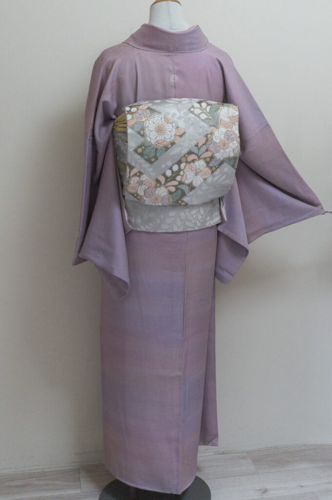 三越さんの銘が入った横段ぼかし、紫色グラデーションの無地着物です。