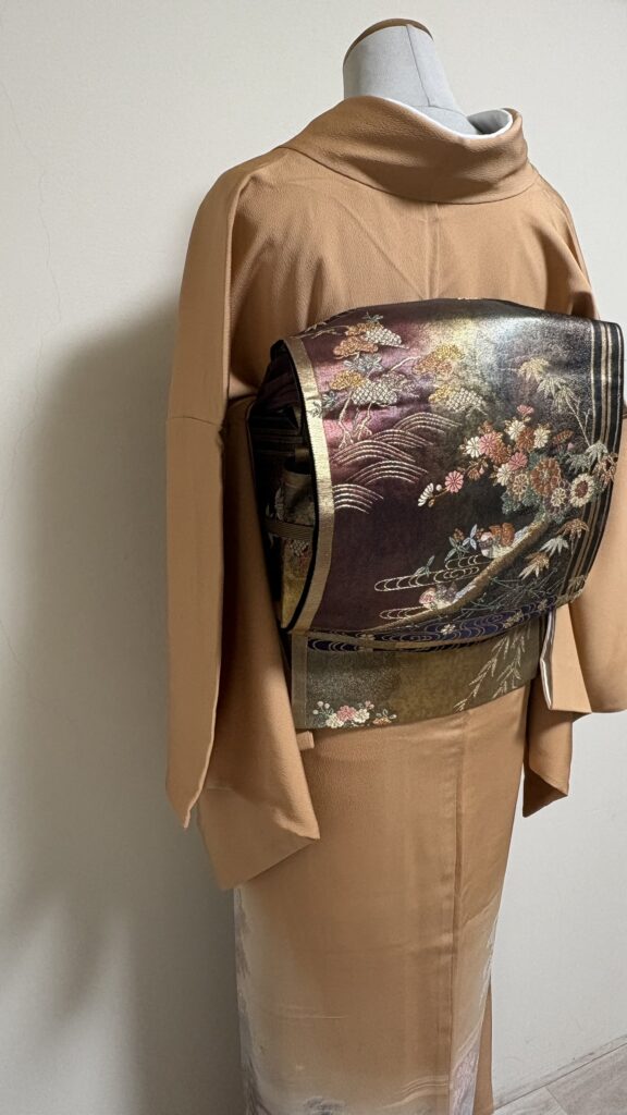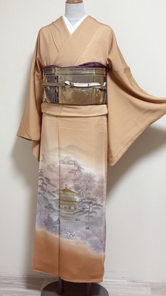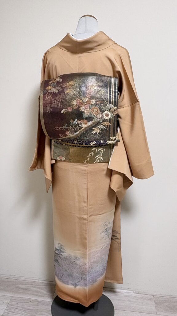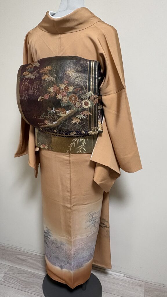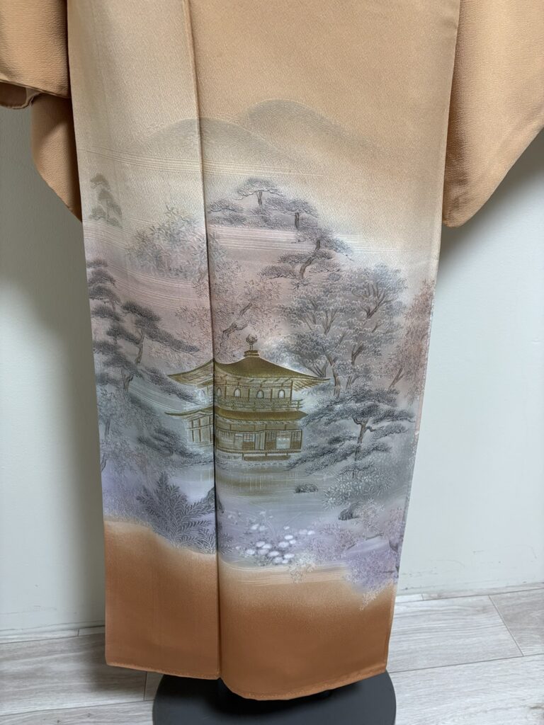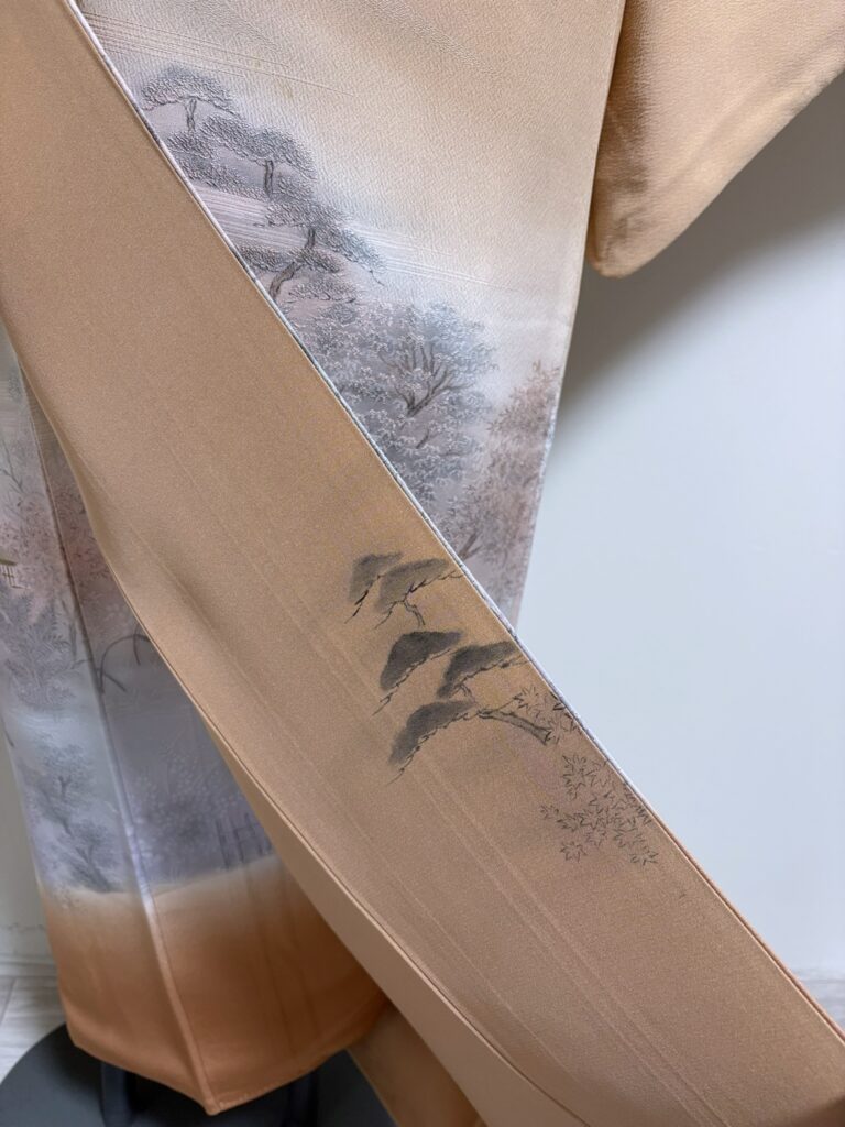 薄橙色(アプリコットカラー)の紋なし色留袖です。
