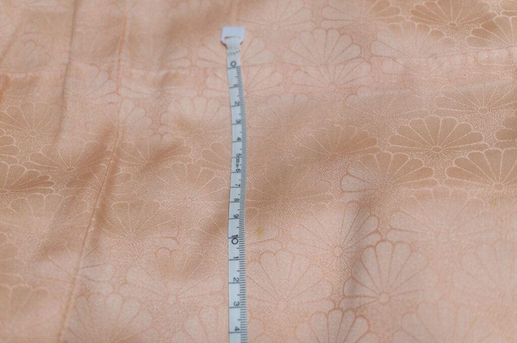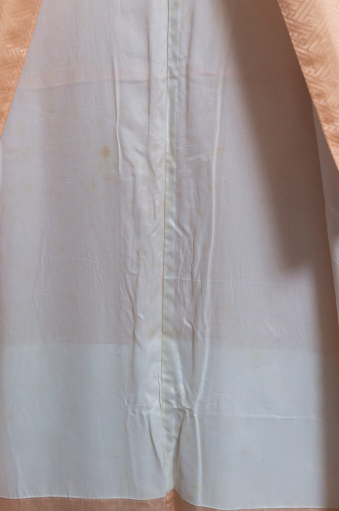 - 内揚げの10センチ下あたりに小さなシミありますが、こちらも帯で隠れます。